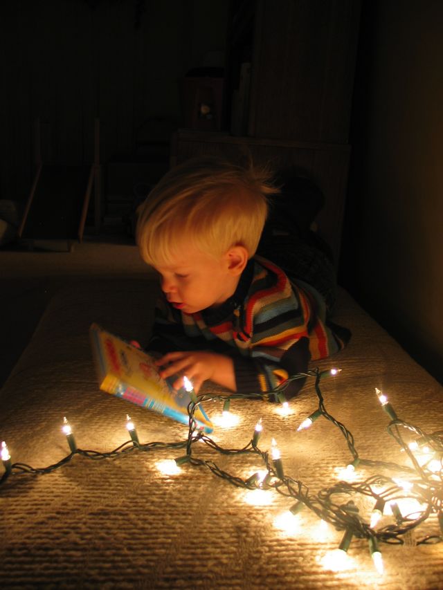 Great that Eli is enjoying all the fun the Christmas holiday brings! Love the picture of Eli reading by the Christmas lights!