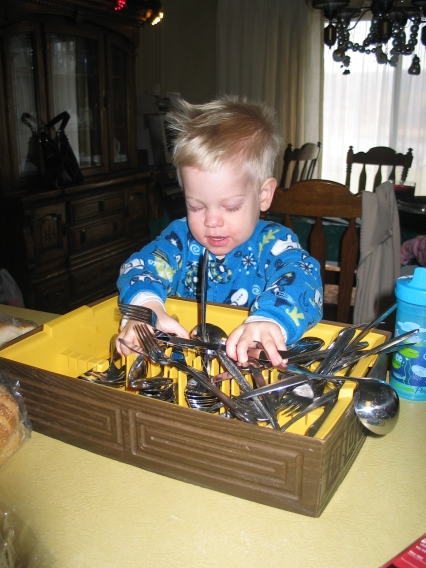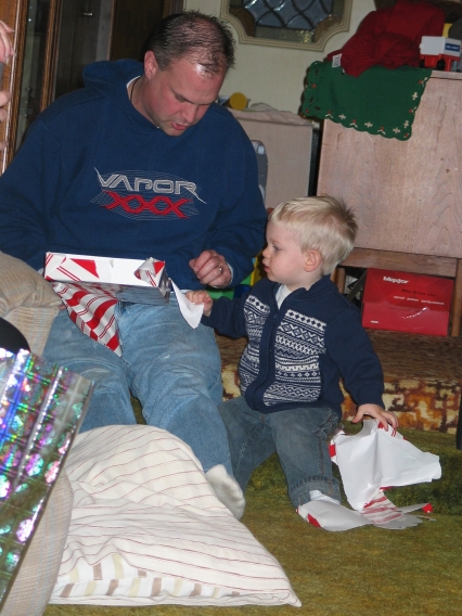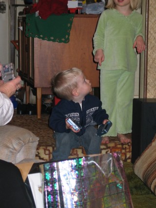 -All of Elijah’s boy cousins have Gameboys and/or Leapsters, so Elijah kept running around with Jon’s Gameboy and sitting by them while they played; trying to be a big boy like them. If they weren't looking he would run around and steal their Gameboys though.