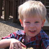 I think his favorite thing at the park is this rubber bridge that kids can walk on and bounce up and down. He spends at least half of our time at the park just running across it. Yesterday he saw an older boy swinging on the parallel bars and saw what you could do with them (he never could quite figure it out before!). So now he likes holding on to them and hanging and swinging himself back and forth. It's neat to be able to go back to the park this year and see all the new things that Eli can do there!