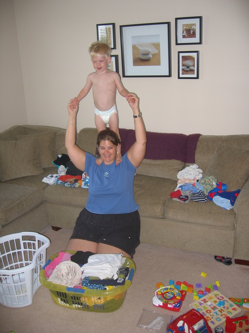 Now Elijah tries to get on my shoulders all the time - unfortunately not always when Mommy is quite ready for it! I think he's inspired by his gymnastic-taking cousins!