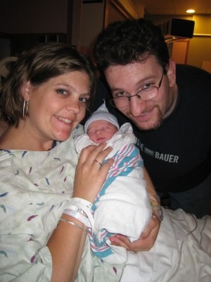 Melissa had a sense that she might be in labor throughout the morning and afternoon, with mild contractions every 8-10 minutes, but she wasn't "sure" until after dinner; Jon worked a full day (through 5:00) that day. After dinner, things sped up quickly, and we got to the hospital in the nick of time. We spent a total of only nine minutes in the delivery room before Matea's arrival!