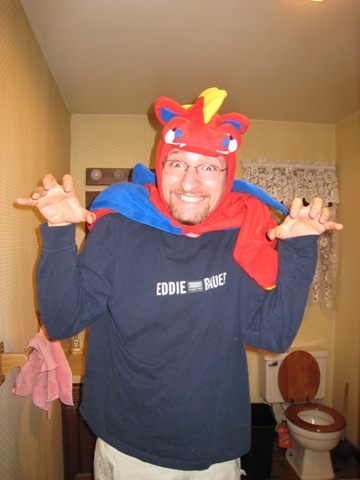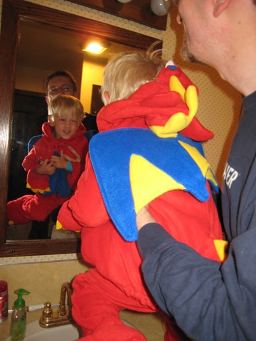 Then Eli wanted Daddy to wear his dragon outfit . . .![]()