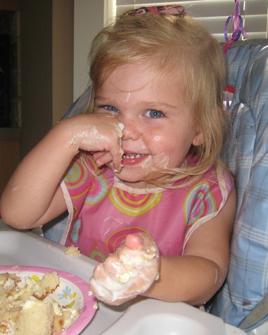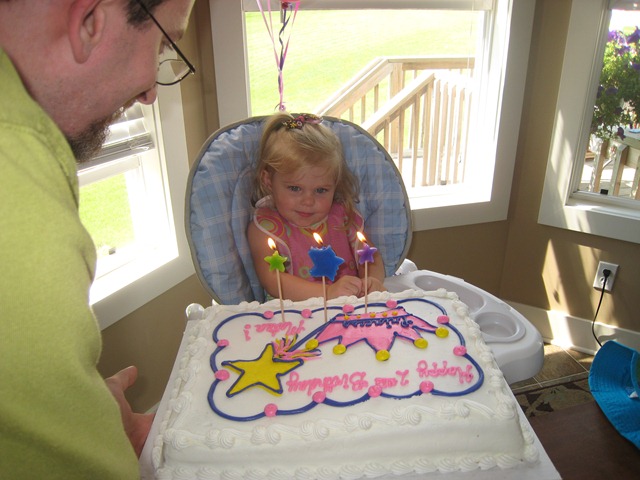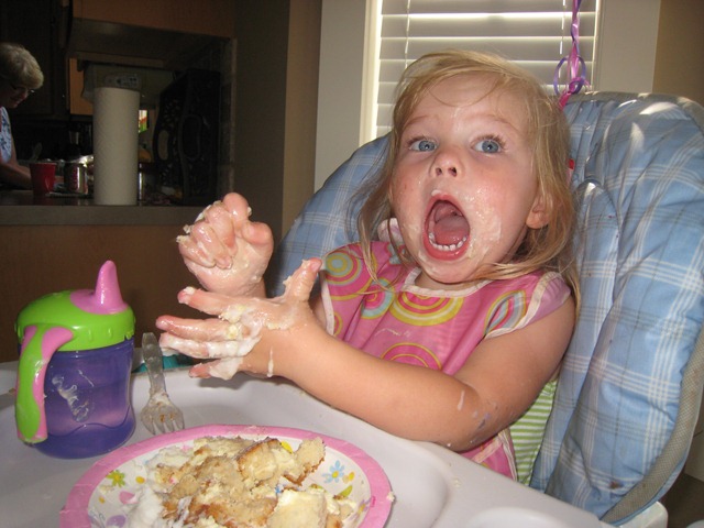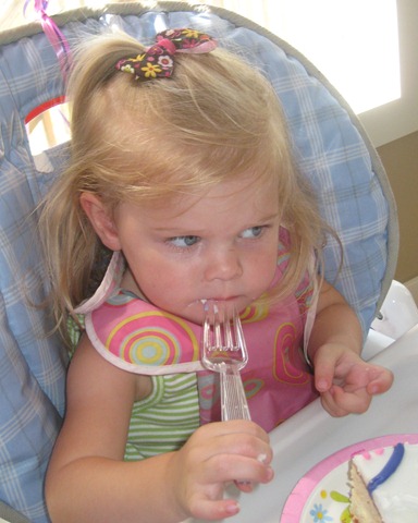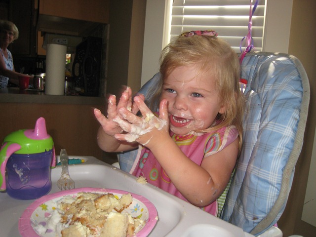I was simply too busy to make Matea a cake this time, so Costco came to the rescue with a princess birthday cake. It still served it’s purpose and tasted great, and she seemed to like it! She couldn’t quite get the candles blown out, so Daddy helped. At first she ate all dainty with a fork, and then she dug in once she figured out that she liked the taste!